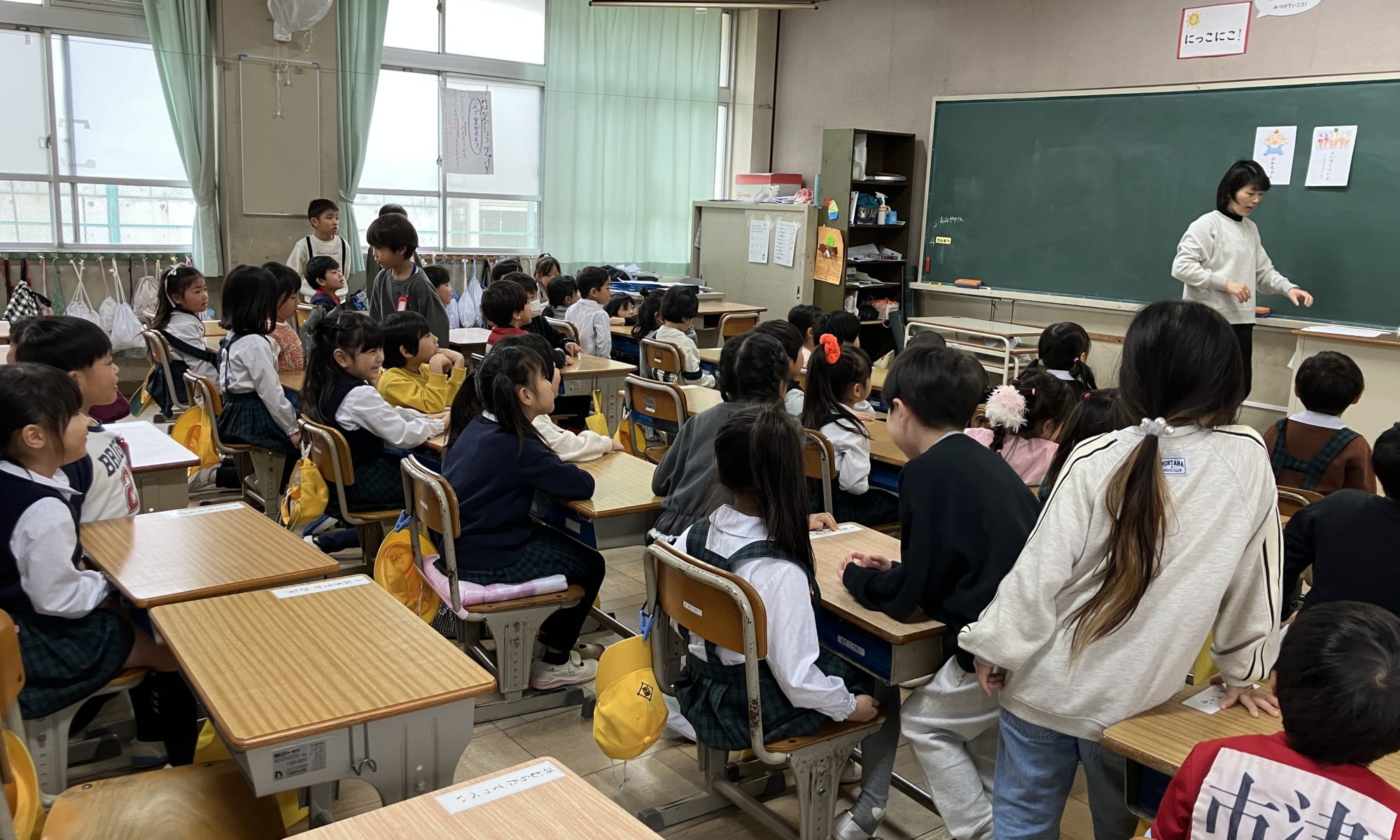 2月25日に年長さんが東深井小学校へ体験に 行きました🏫 いつも座っている椅子や机も違うので 座らせてもらってドキドキ、ワクワク☺️ 先生のお話を聞きながら1年生の お兄さん、お姉さんが教えてくれます。 そのあとはお店屋 …