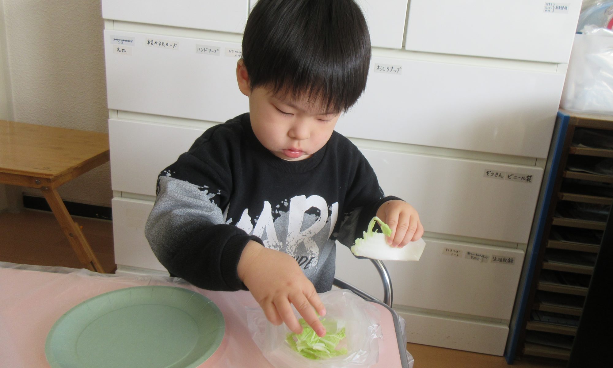 2歳児クラスで行った食育の様子をご紹介します♪ 給食室の先生にお部屋まで来てもらって 冬のお野菜についてのお話を聞きましたよ☺ おめめをキラキラさせて聞いていました✨ みんなが食べたことのあるお野菜やキノコが出てくると …