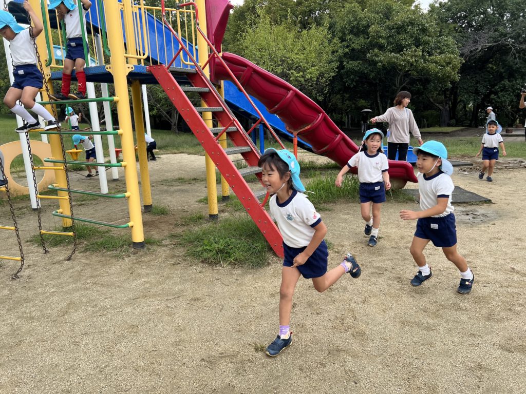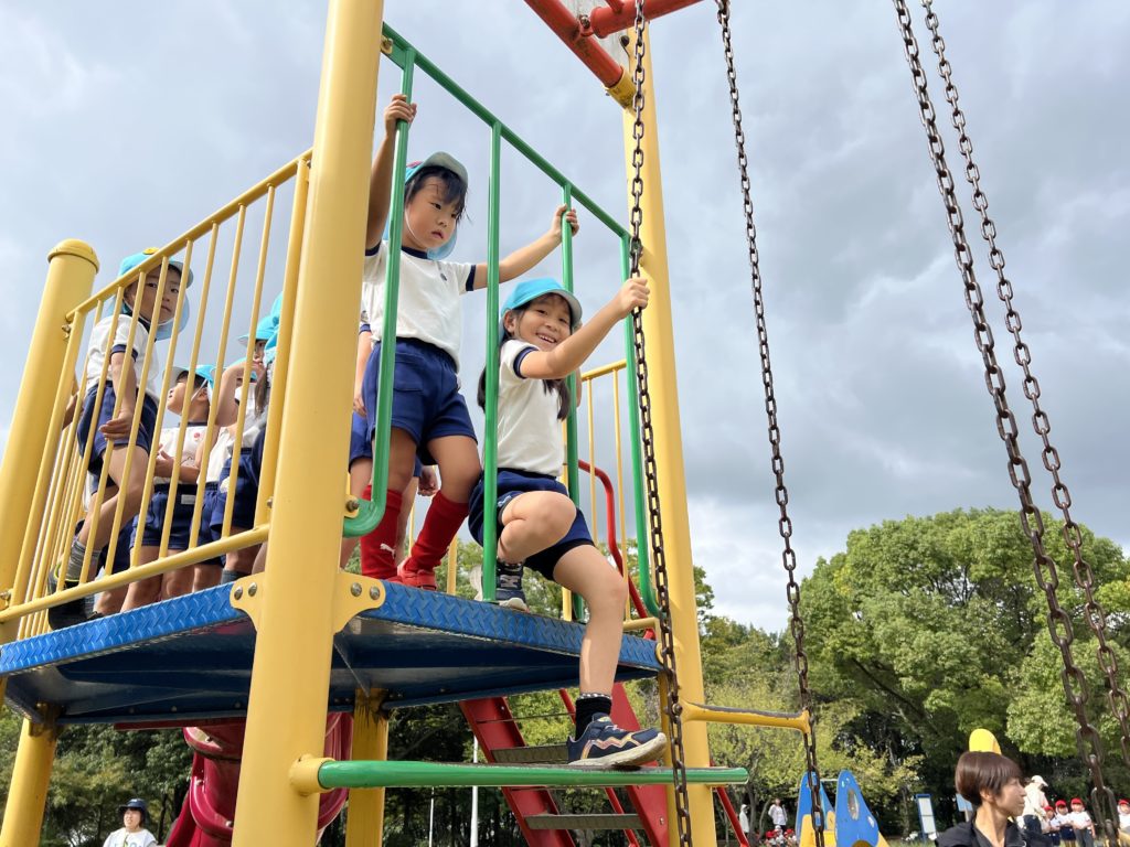 先生たちで濡れていた遊具もピカピカに拭いて、遊具遊びも楽しみました(^^♪