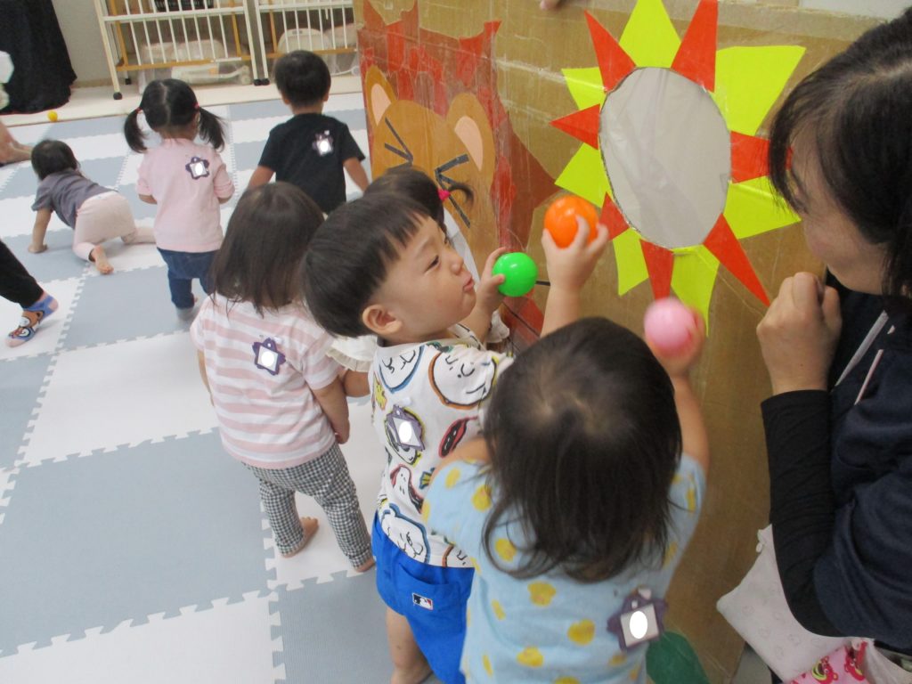 手を伸ばしておひさまにぽとん!!