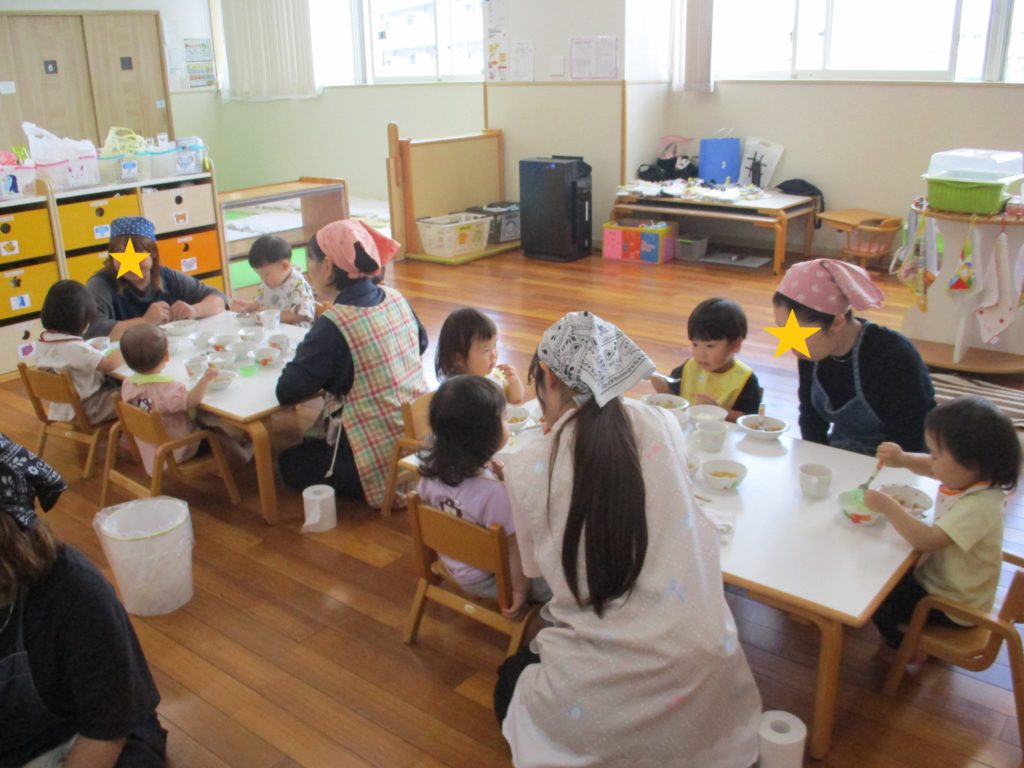 その後は一緒に給食😊