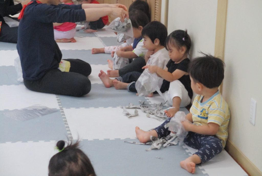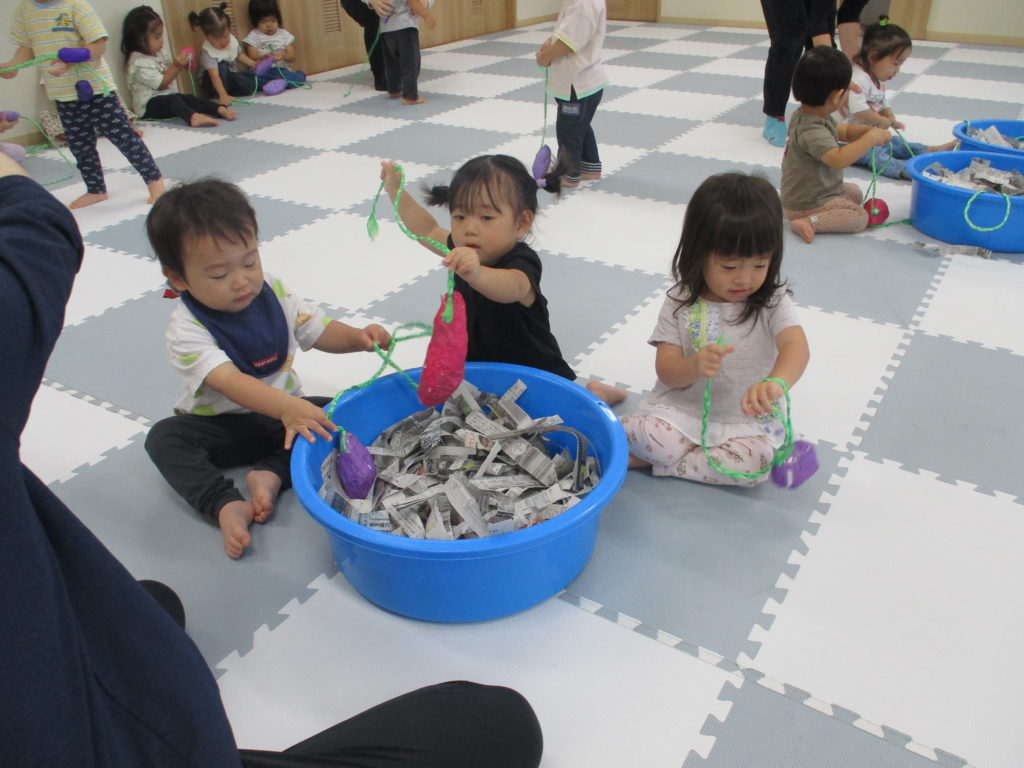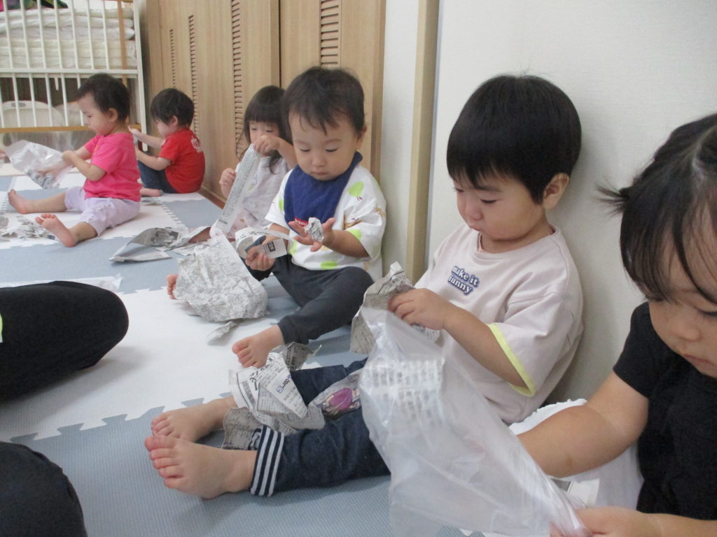 さくらぐみはお芋ほりあそびと新聞あそびをしました。