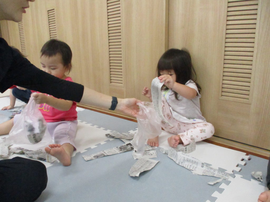 次は新聞をびりびり~🎵