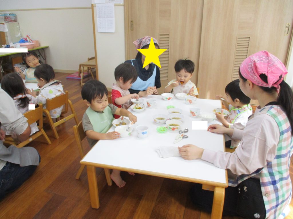 給食も頑張って食べているところを見てもらいましたよ★★