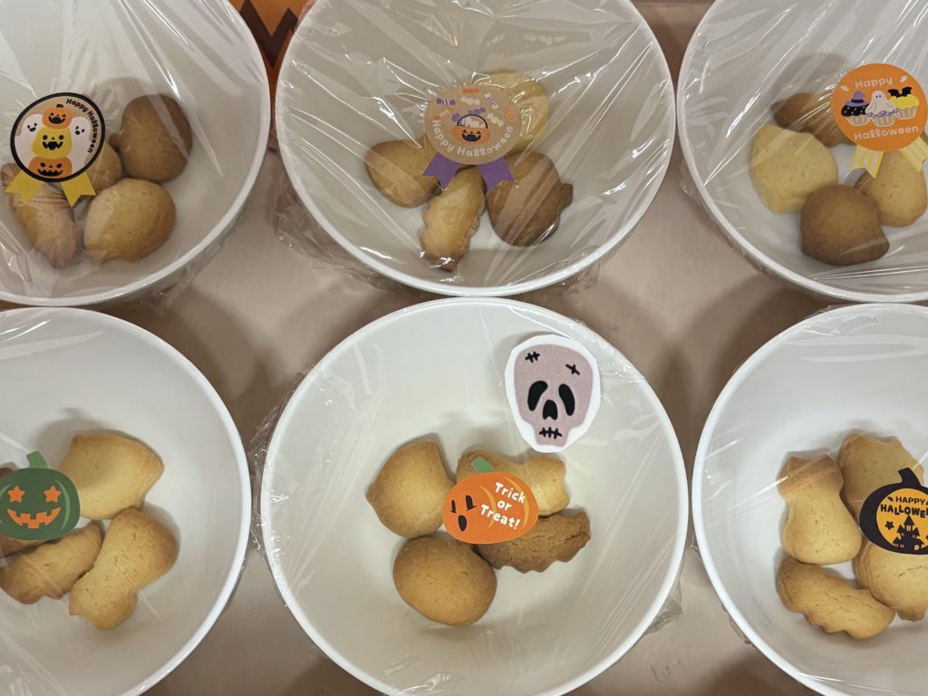 投稿日: 2025年10月31日2025年10月31日 未分類 HAPPY HALLOWEEN🎃 今日はハロウィン★ ということで給食は特別メニュー!! かわいいオバケのカレーにこどもたちは大喜び👻 おかわりもたくさんしていました! そして15時のおやつもハロウィンクッキー★ 「オバケだ~」 「これはなに?」 とおともだちと楽しく食べました^^ おまけ… 調理さんからミャクミャクのクッキーが届きました♬