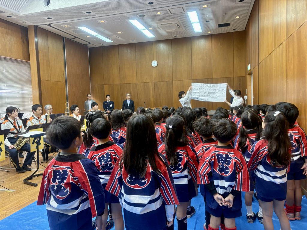 幼年消防クラブ員として、「防火のちかい」を大きな声で発表し、消防士の方々に聞いていただきました。