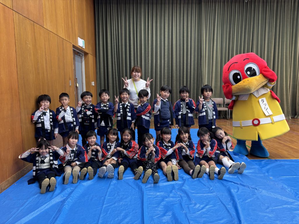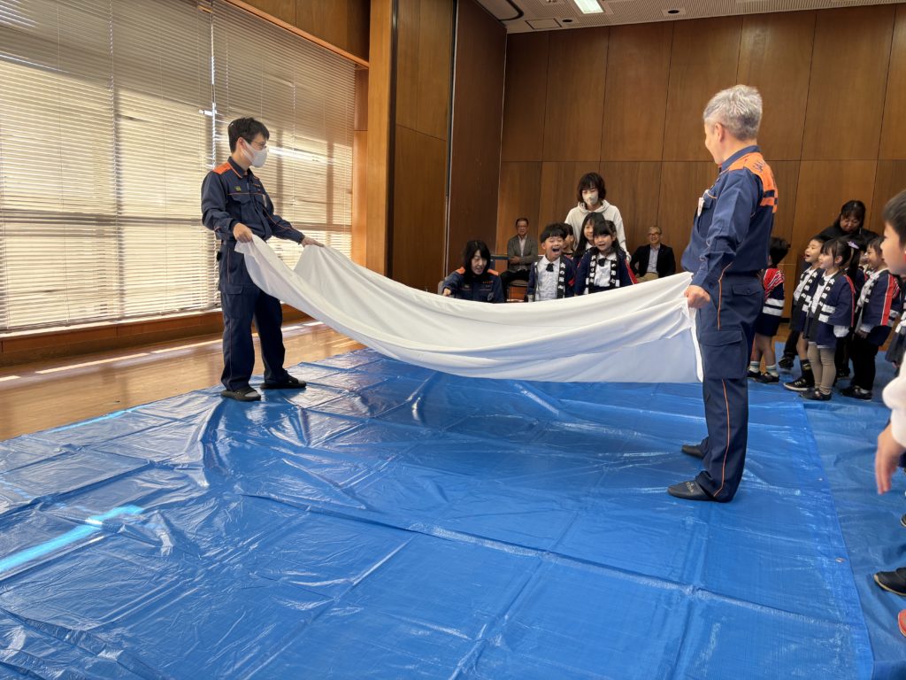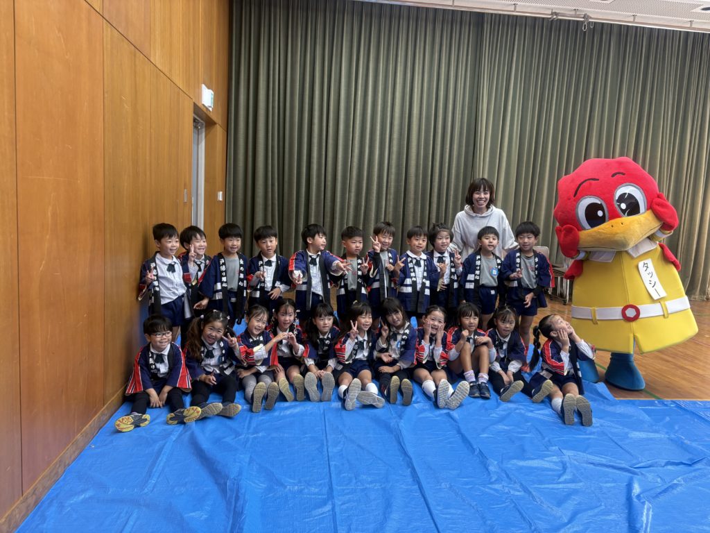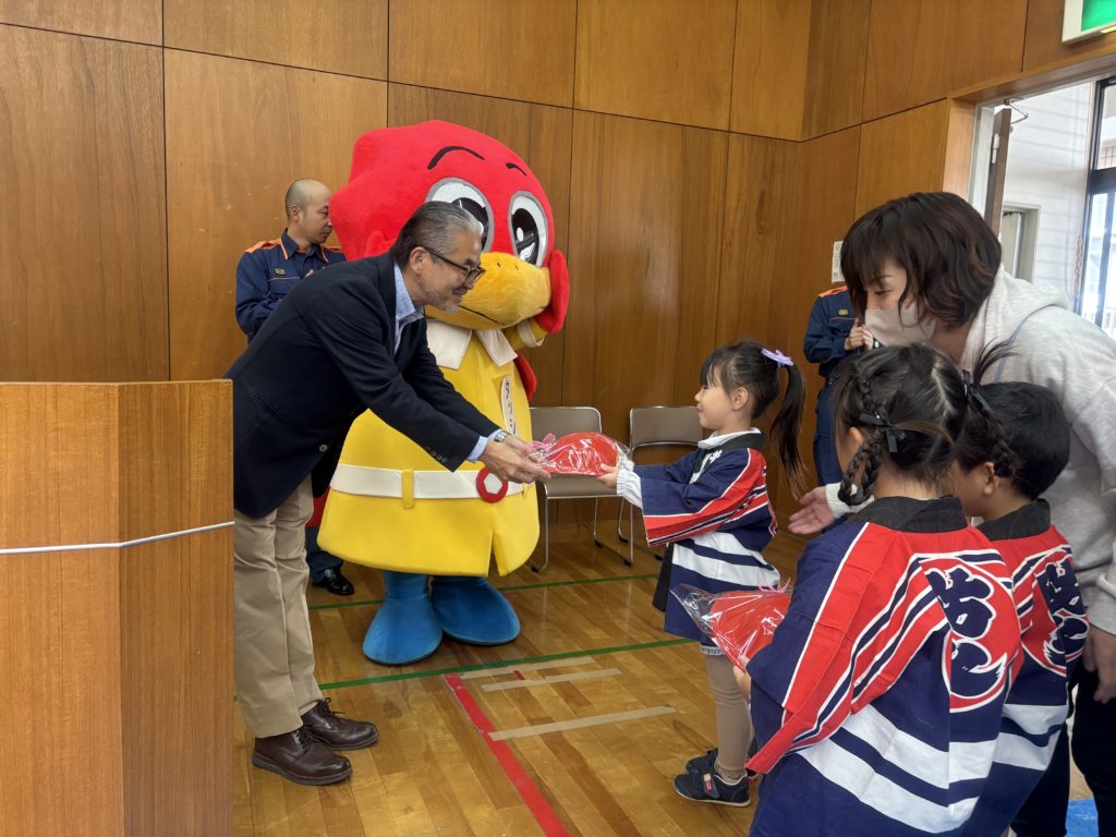 消防署の方々からは、年少さん年中さんの分も含め一人ひとりに記念品を頂きました。