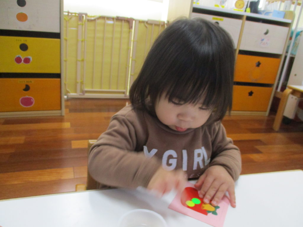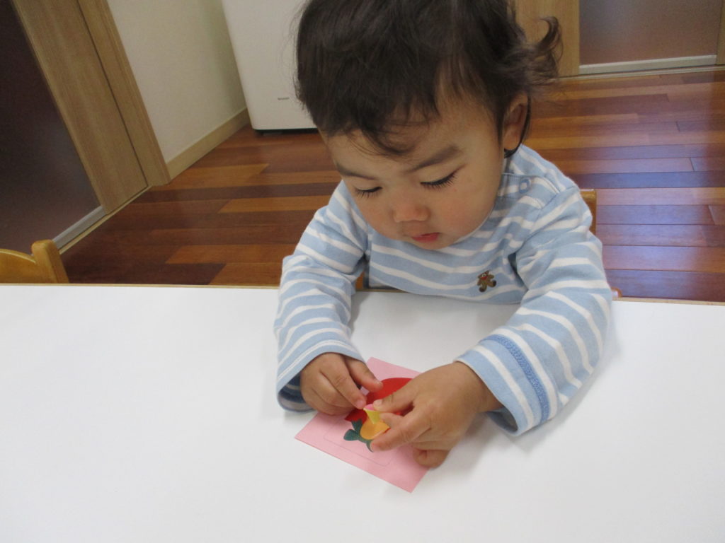 一緒に台紙からシールをはがすとそのあとはどんどん自分で