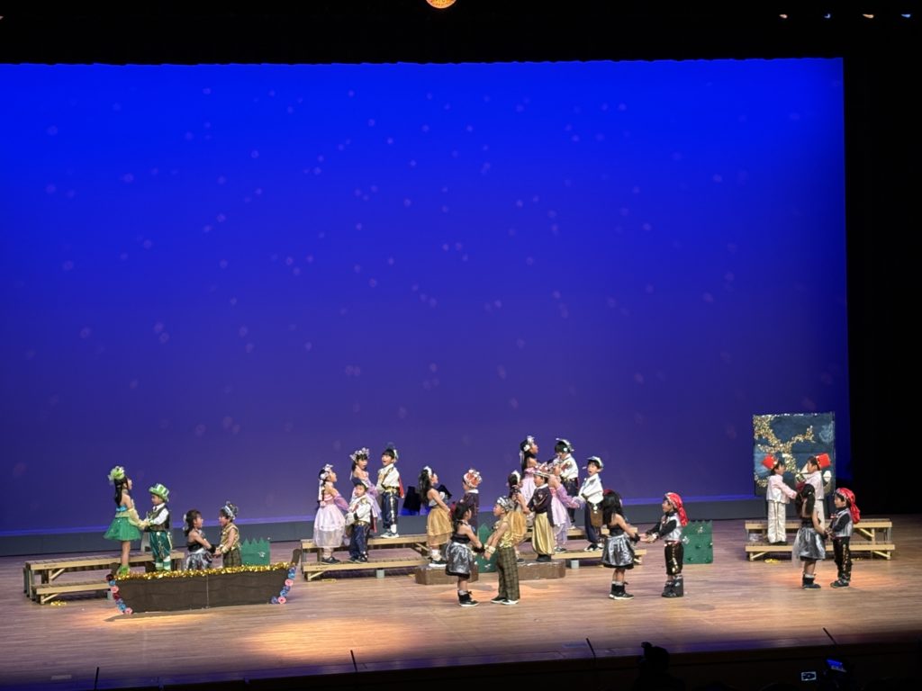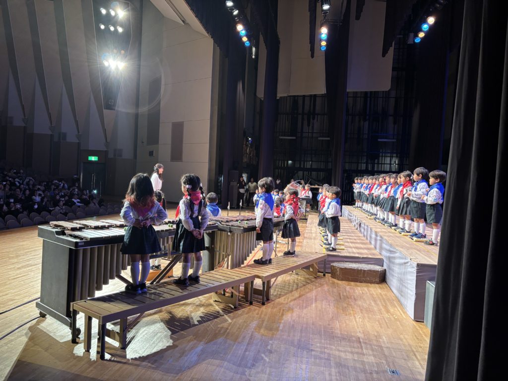幼稚園最後のお遊戯会、きれいな歌声と迫力ある演奏をして