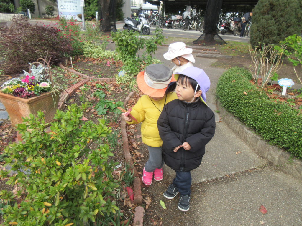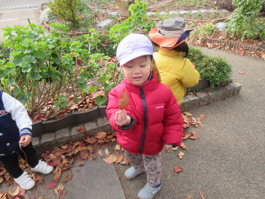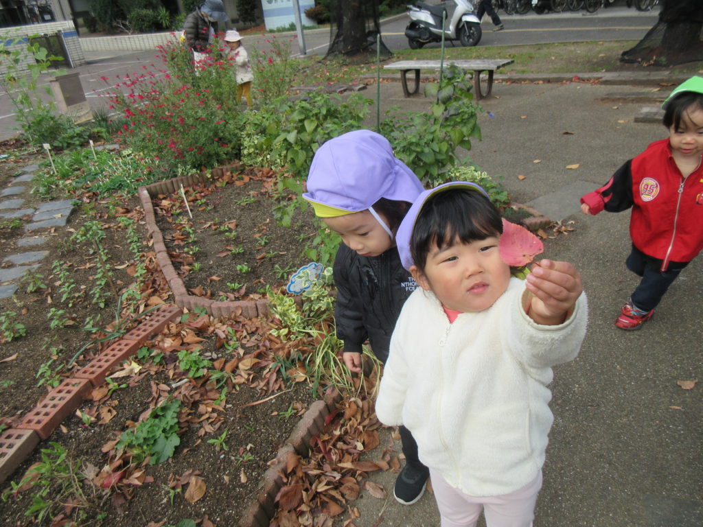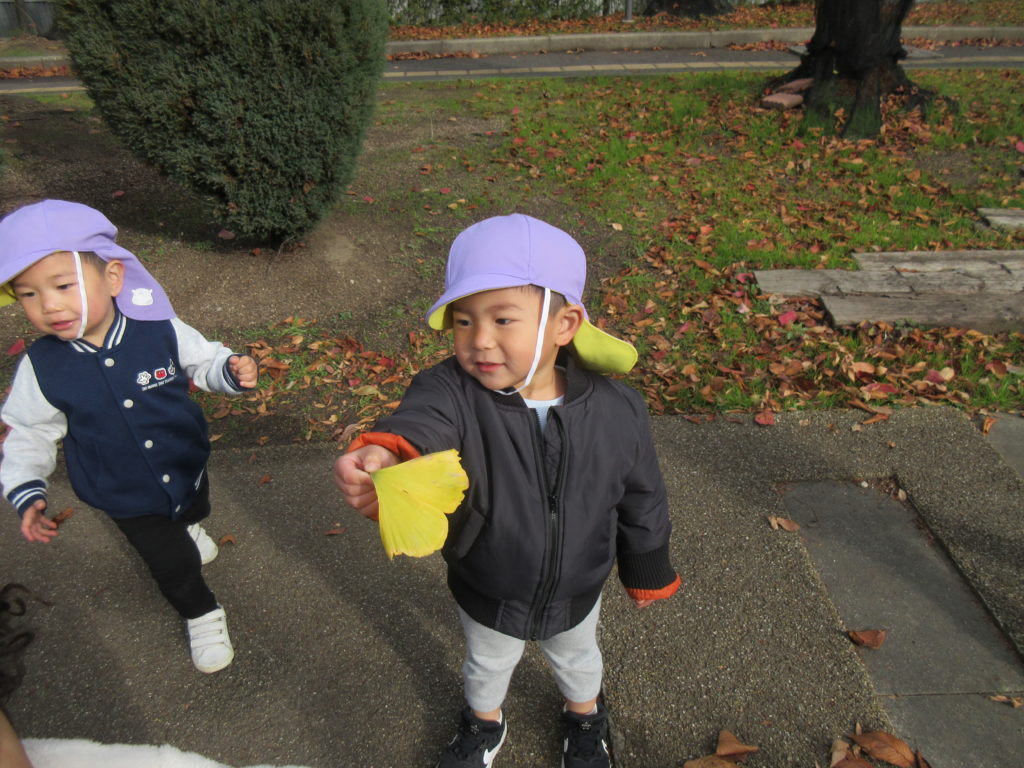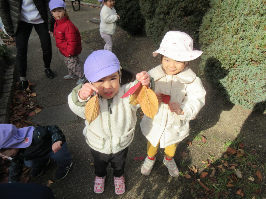 落ち葉を拾ったり、走って追いかけっこをしたりと
