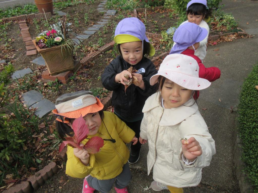 みんなと一緒に落ち葉をみ~つけた!!