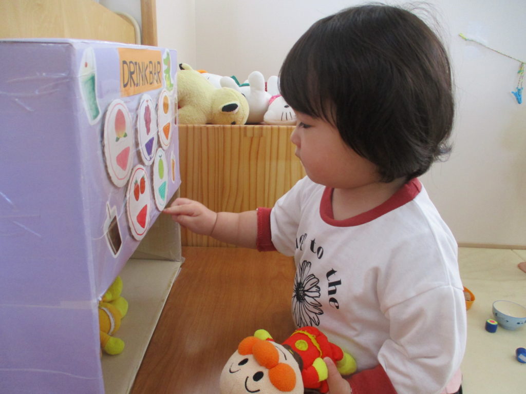 「カレーパンマン、どうぞ~」とお人形にもジュースをあげる姿も・・・☺