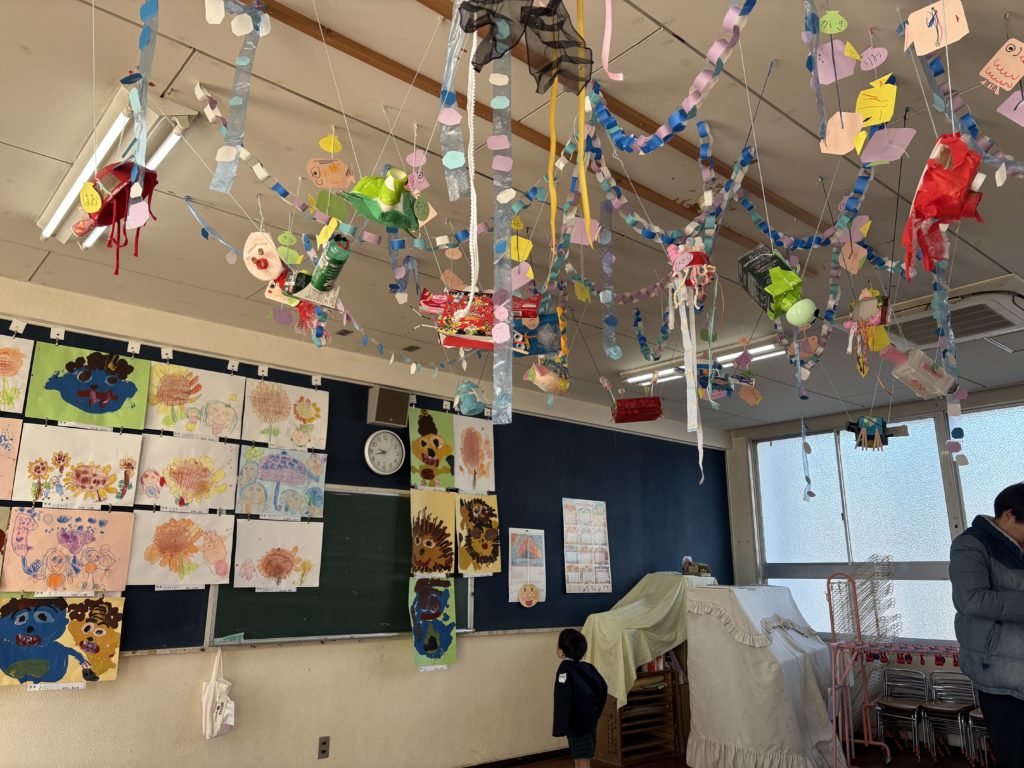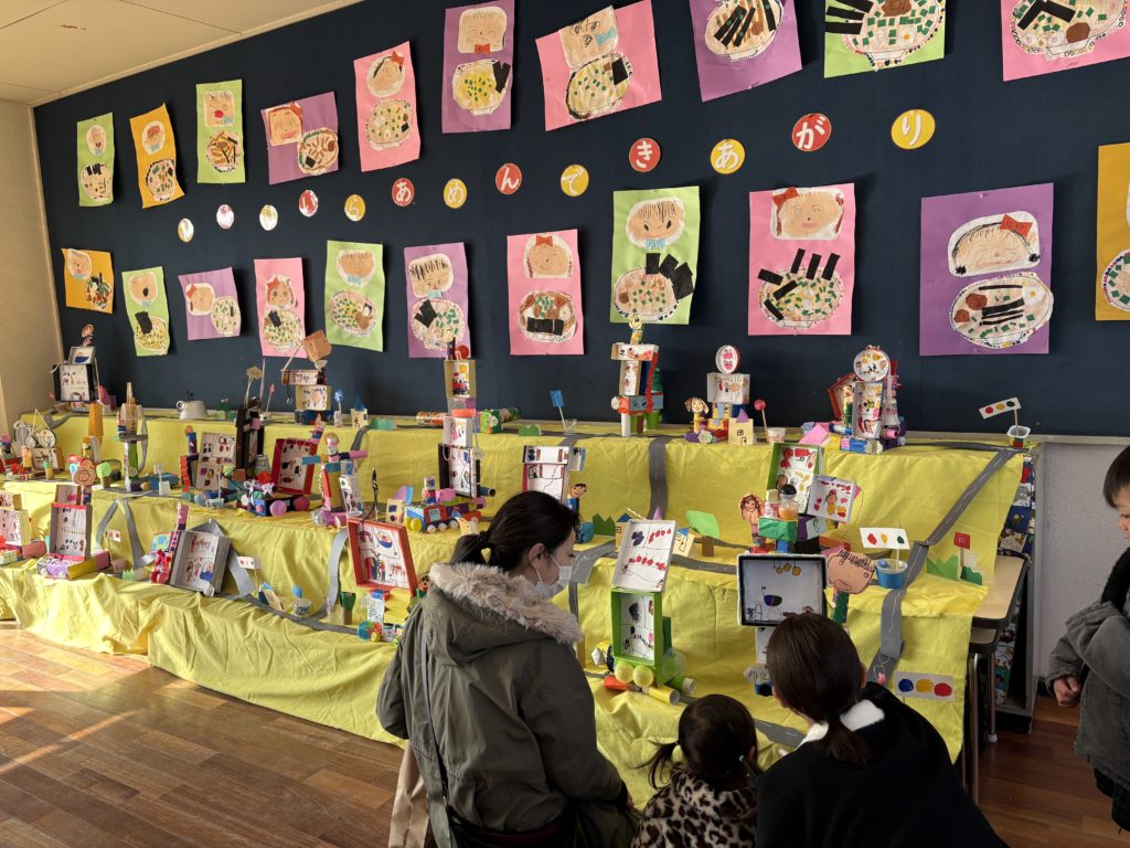 どのお友達も、お家の人に作品や絵を見てもらいながらたくさん褒めてもらっていましたね。