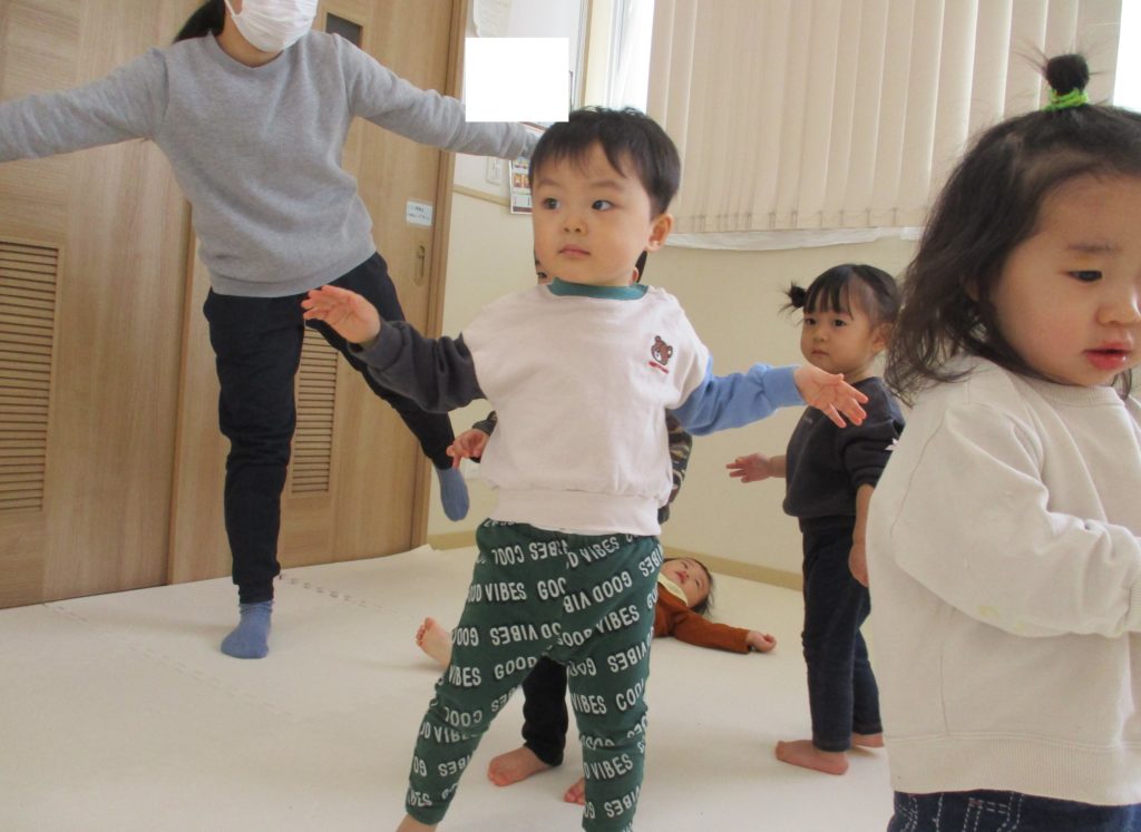 手を横に広げてお部屋の中をクルクルと歩きます👣