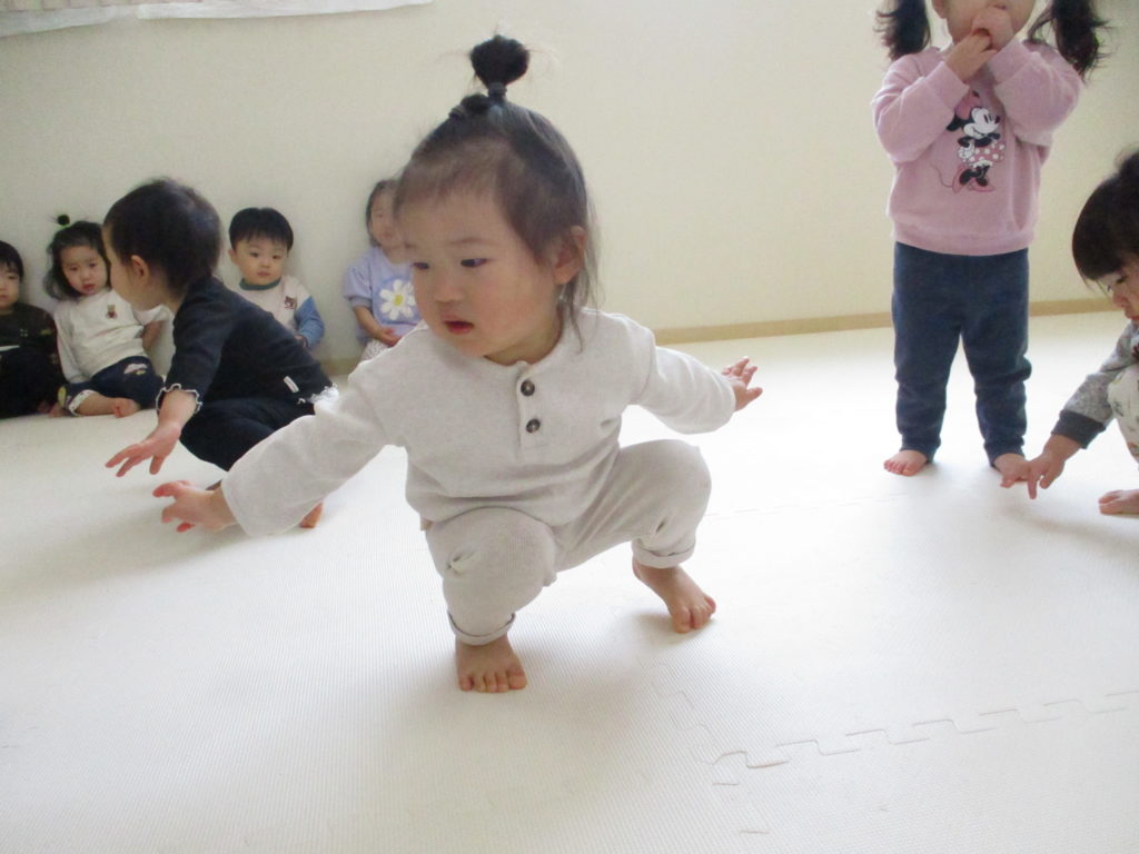 みんなリズムあそびが大好きでピアノの音に合わせてたくさん体を