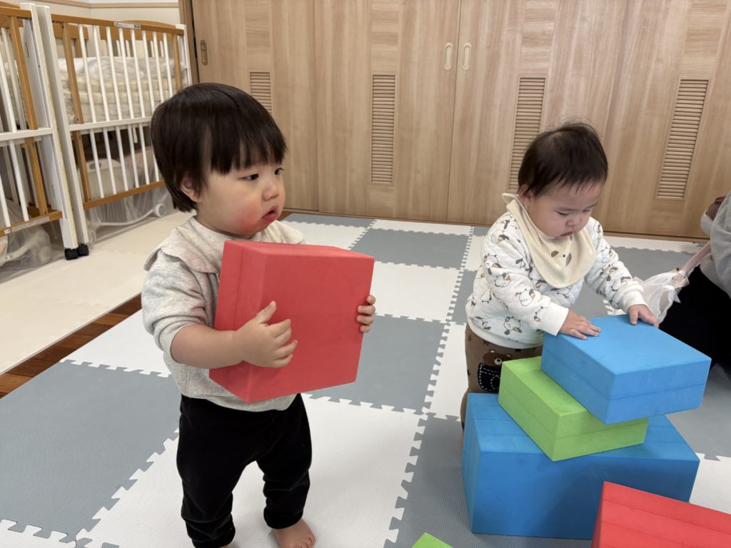準備をしている間は先生たちを興味津々で見つめたり、「早くあそびたーい!」と体がうずうず・・