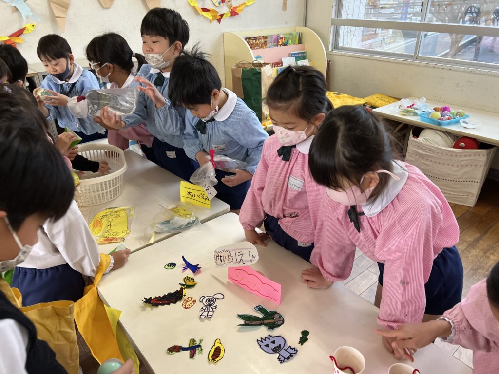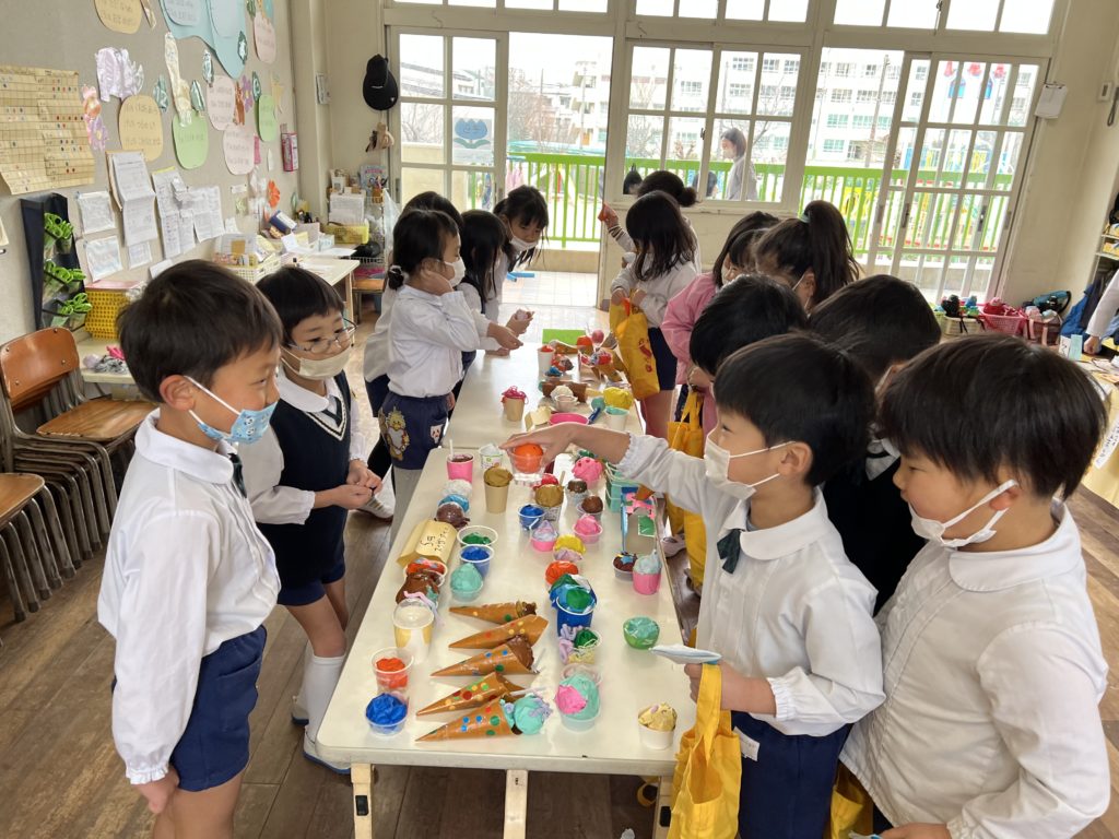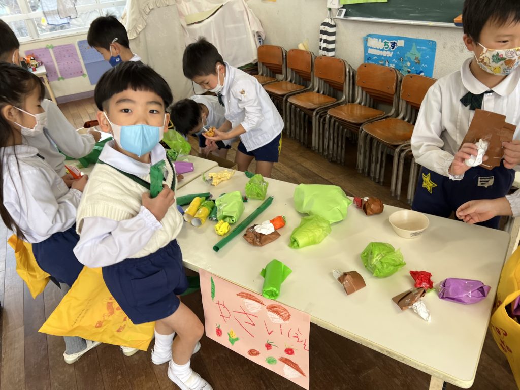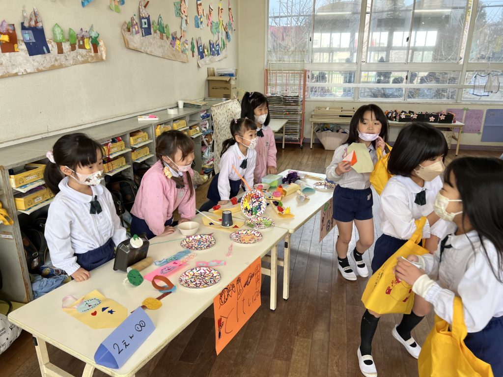 投稿日: 2023年2月20日2023年2月20日 未分類 お買い物ごっこ♪ 年長です。 先週、お買い物ごっこをしました。 この日の為に クラスのみんなで何を作るか話し合い準備してきました。 当日は、お店屋さん役とお客さん役を交代しながら楽しみましたよ♪ うめぐみは、おかし屋さんと魚屋さん そらぐみは、アイスクリームやさんとパン屋さん つきぐみは、電気屋さんとおもちゃ屋さん ほしぐみは、時計屋さんと八百屋さん 「いらっしゃいませ~」「サービスしますよ!」等、元気な声が響き渡っていました。 楽しい思い出になりましたね^^