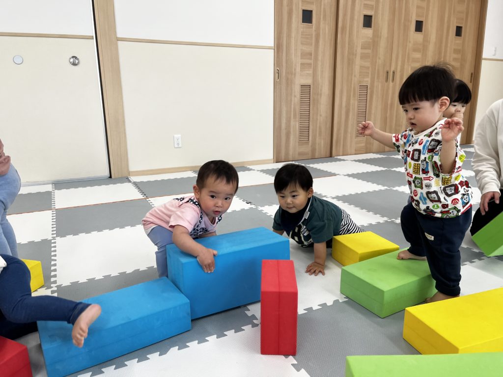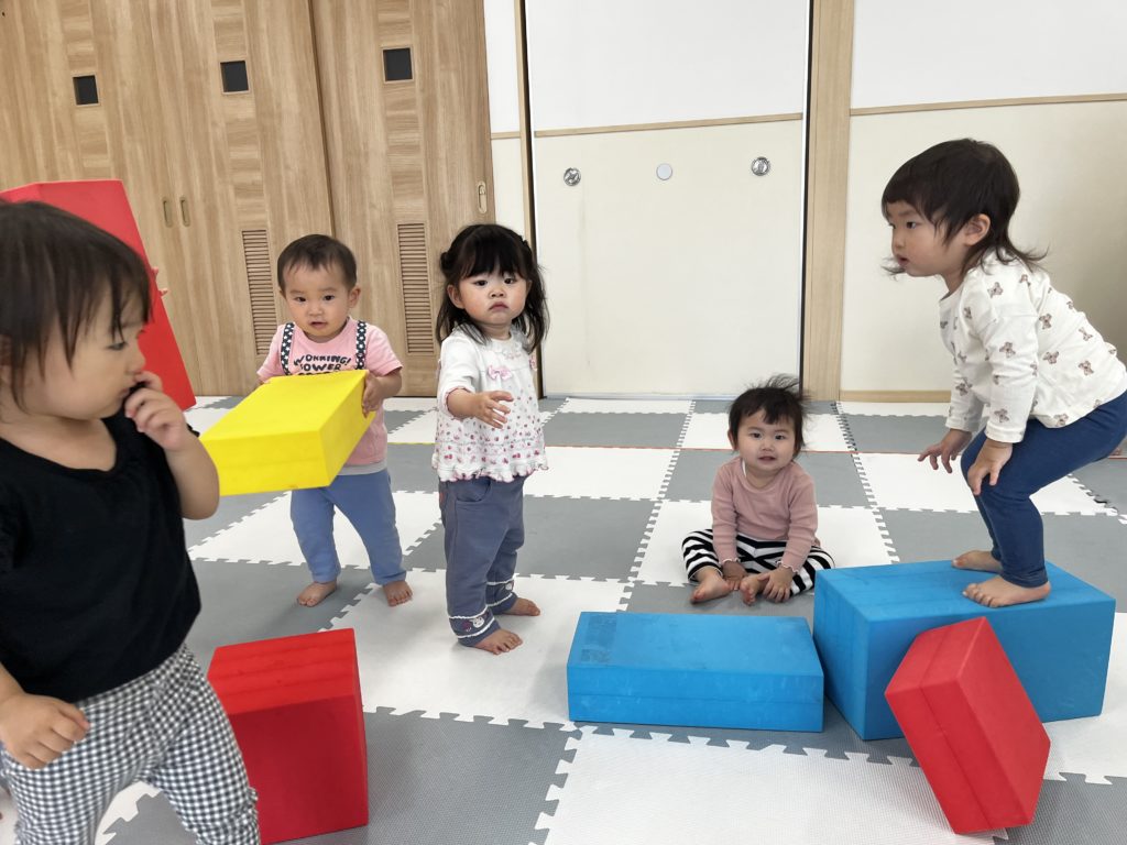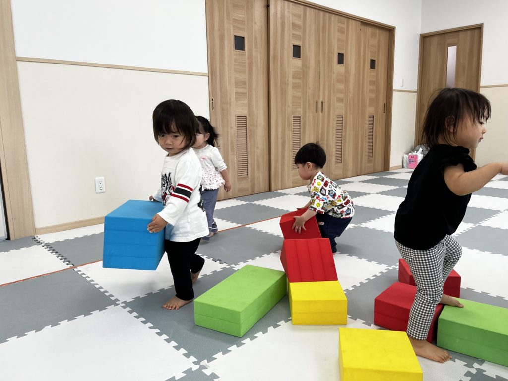 大きな積木をよいしょ、よいしょ!!