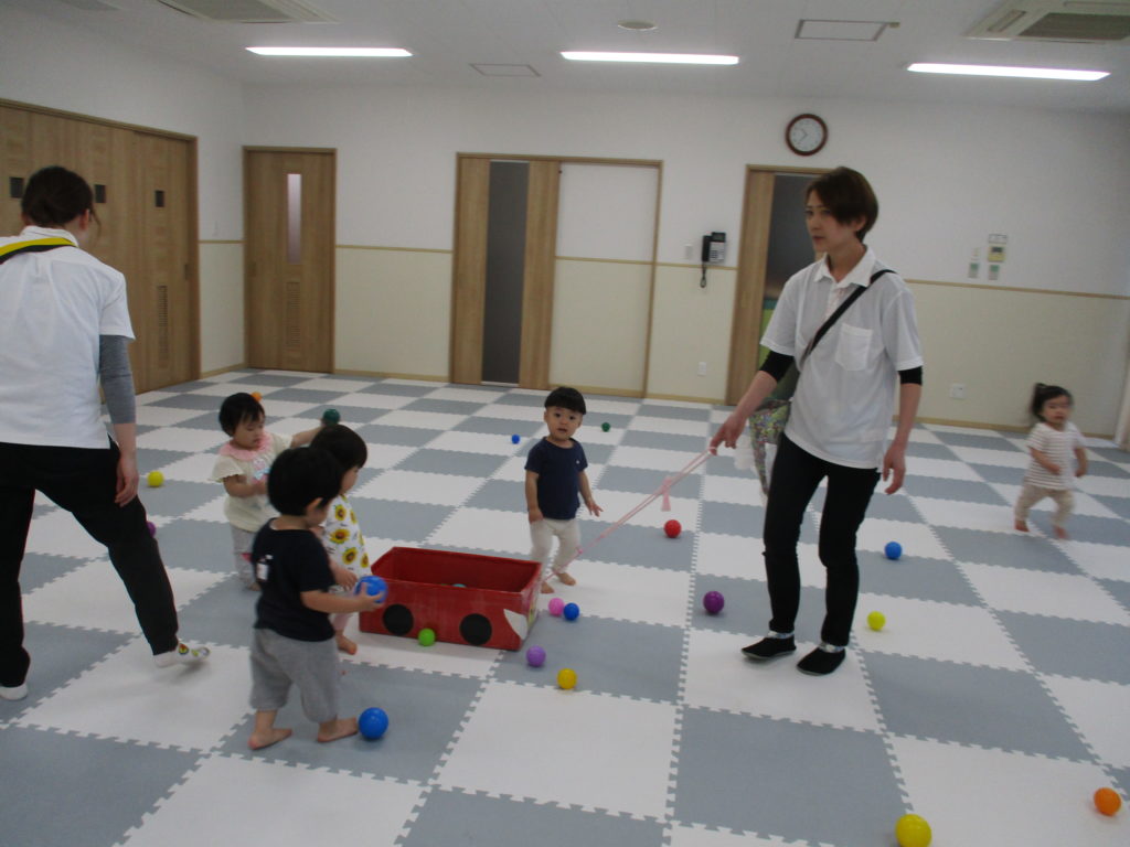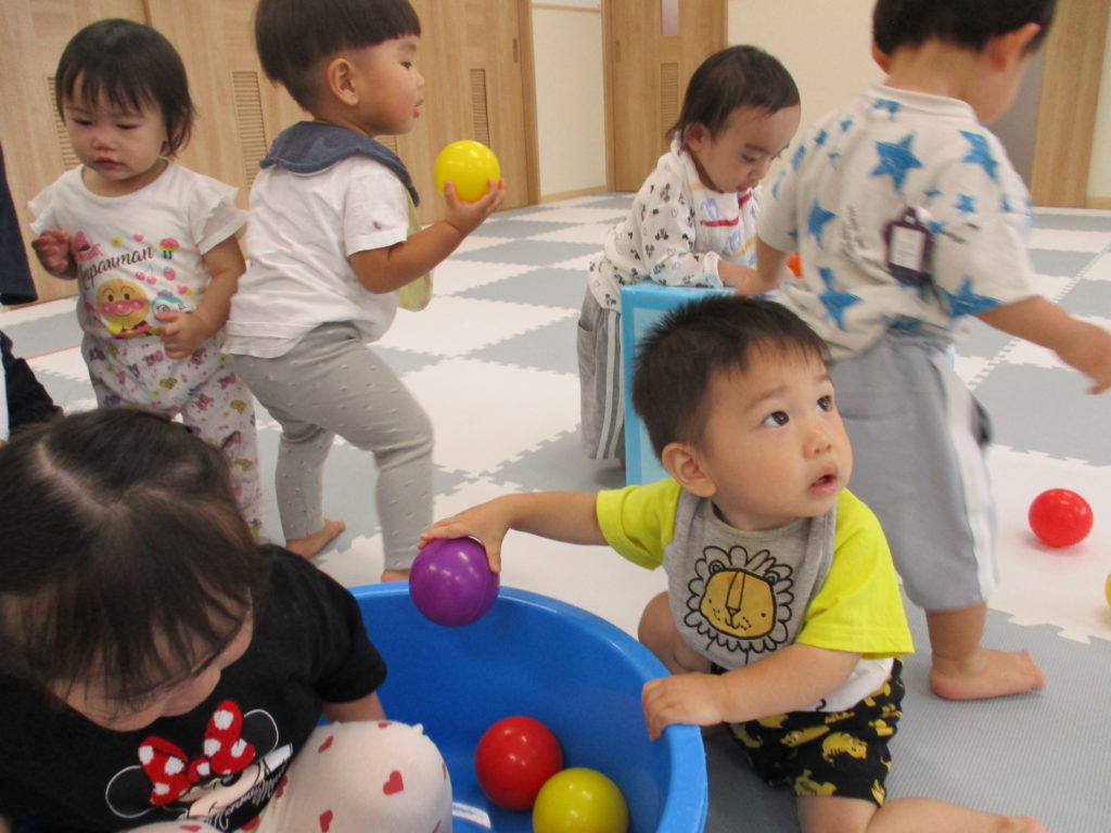 すみれぐみのおともだちはボール遊びをしました。