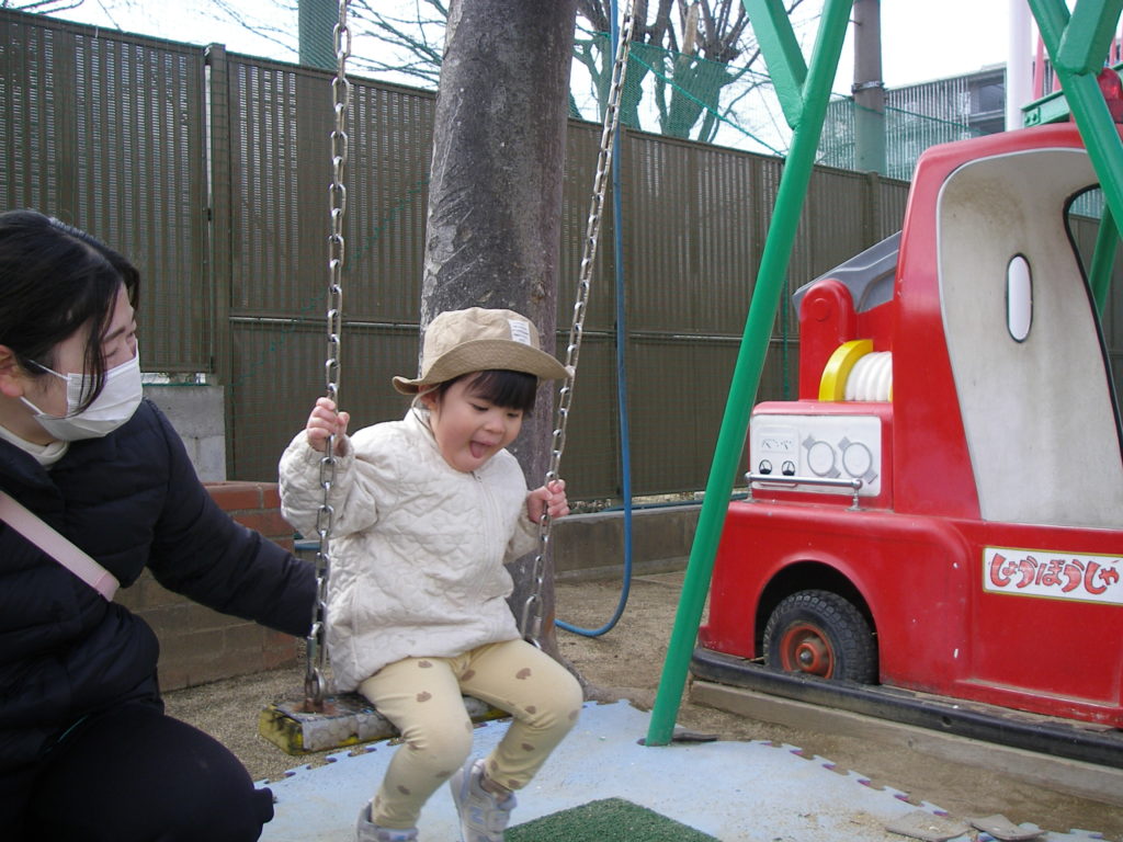 ブランコが揺れると、ふわっとした感覚に思わず「わぁっ!!」