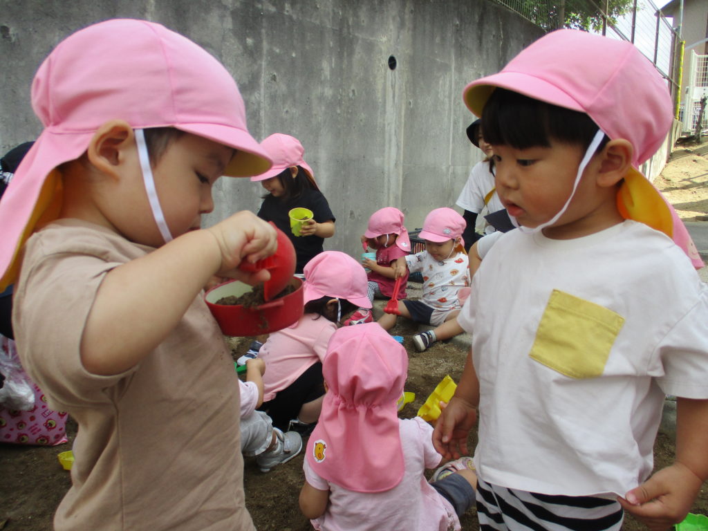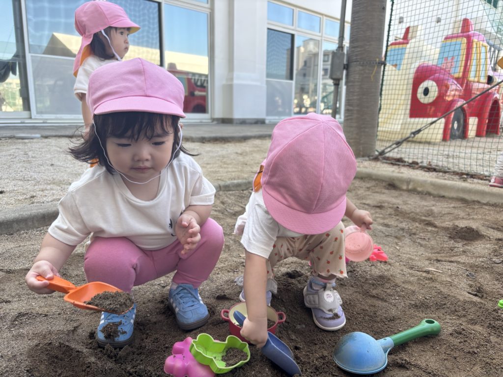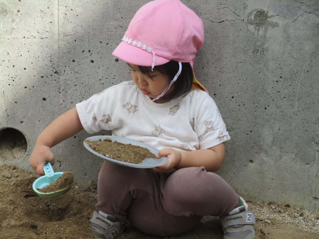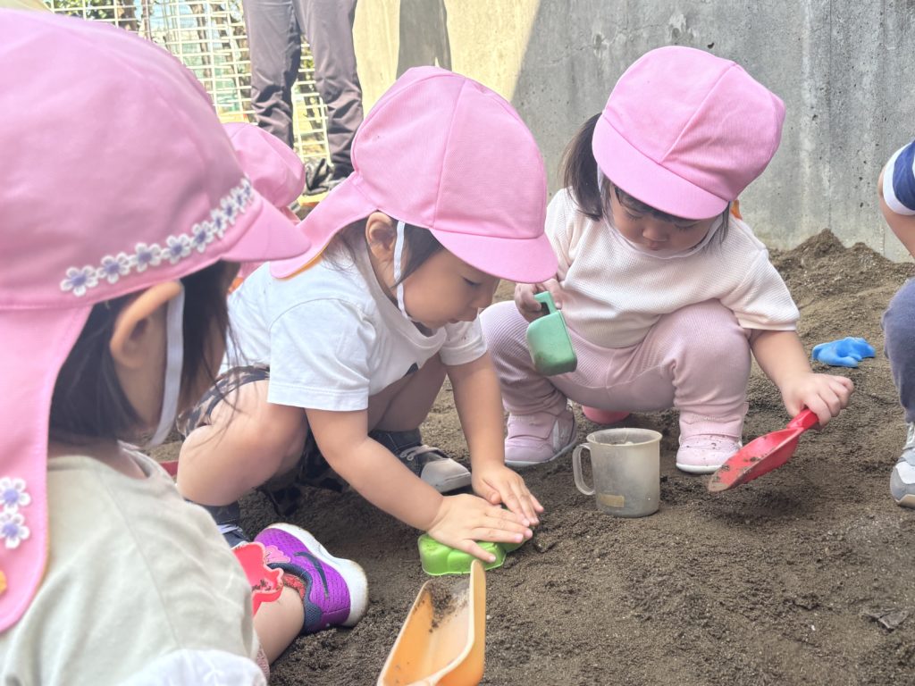 お砂場の周りにいた虫にも興味を示し、『みて!』と教えてくれました。