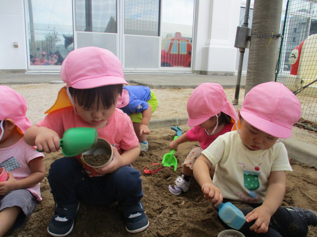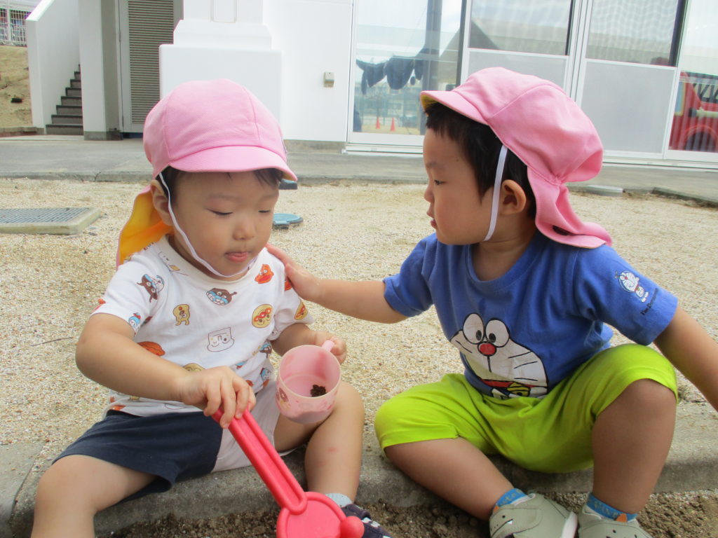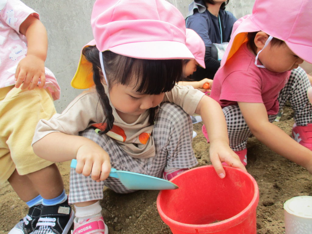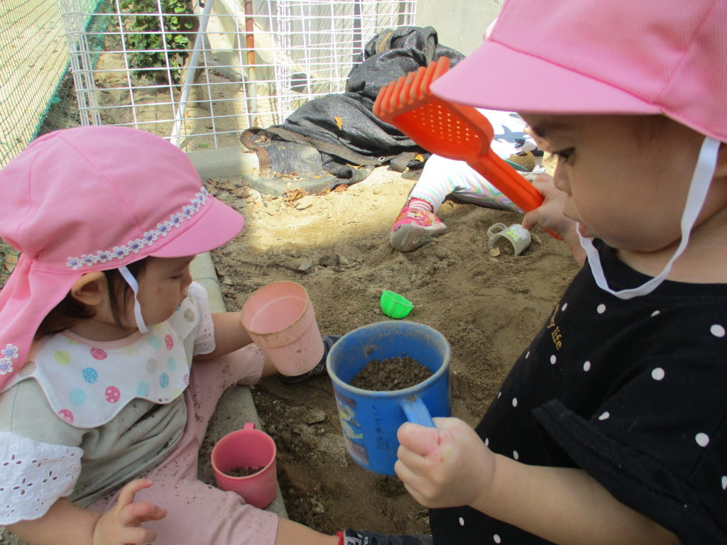 お砂場の周りにいた虫にも興味を示し、『みて!』と教えてくれました。