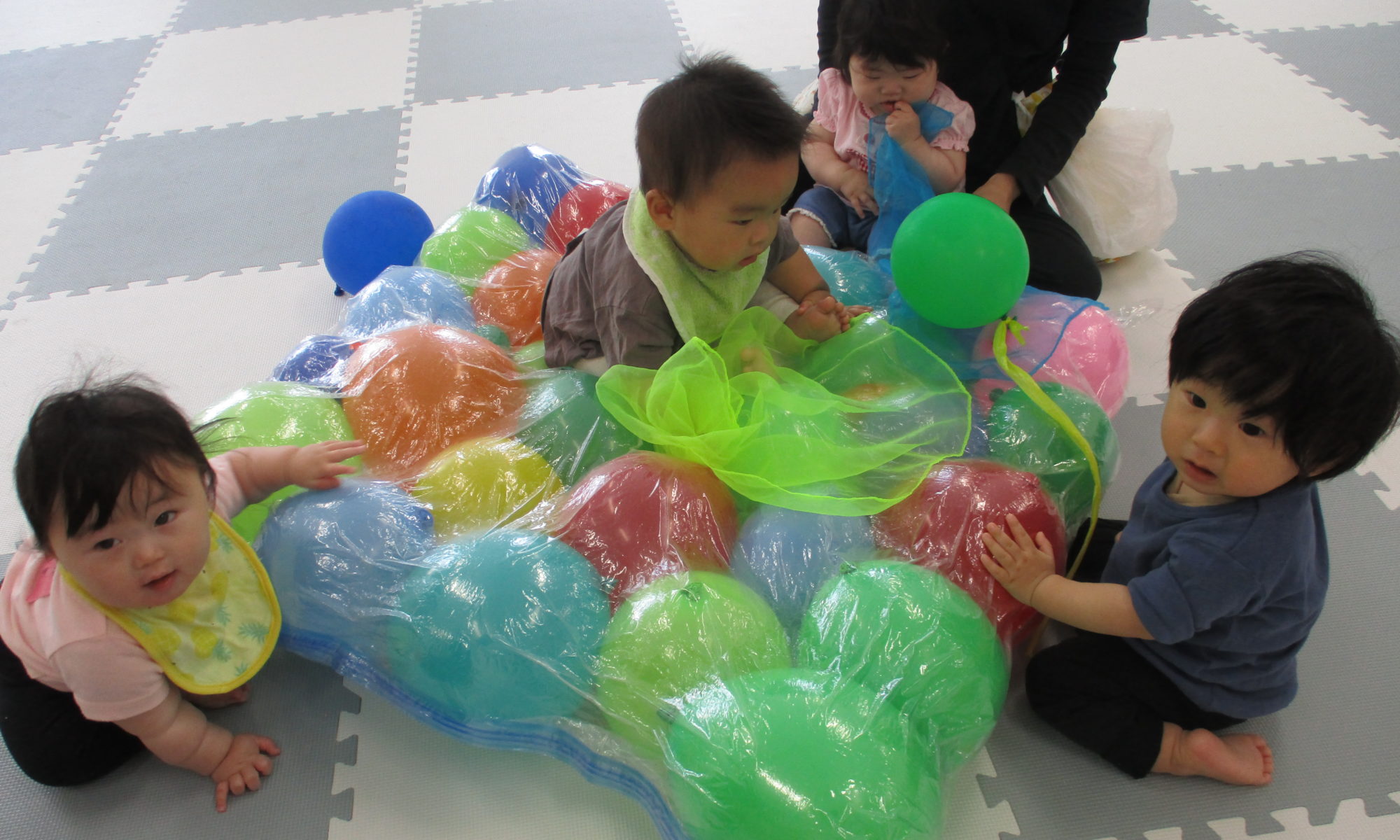 保育参観がありました。 保護者の方を見ると泣いてしまうおともだちもいるので 子どもたちからは、保護者の方の姿があまり見えないように工夫しています。 風船やカラーボールを追いかけたり、 たくさん体を動かして普段通りの元気い …