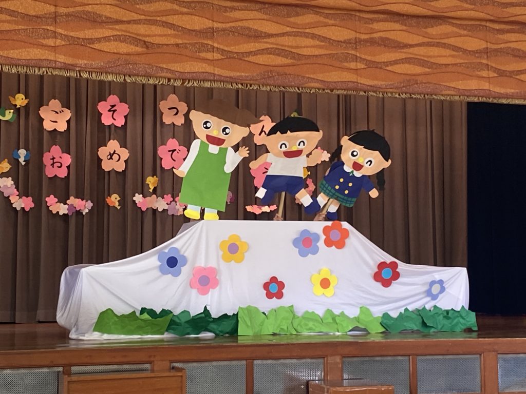 初めは先生たちからのペープサート、お話のプレゼントでした。